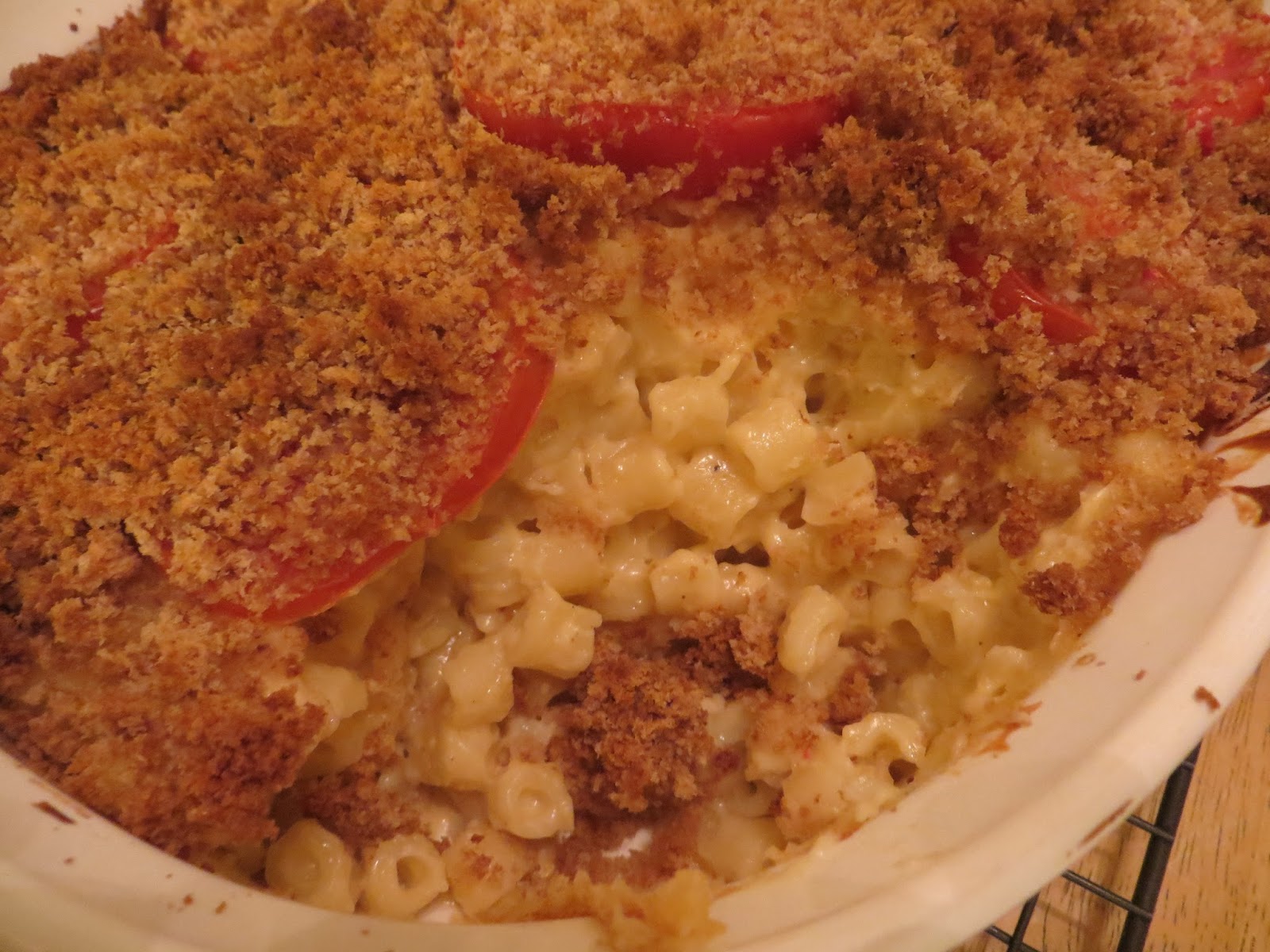 My son Matthew has been asking me all summer to make his favorite mac and cheese. In most cases this would not be a big deal. There is the familiar blue box accompanied by the pre-packaged bright orange powdered cheese (product) that takes a mere ten minutes to make. However, this is not the recipe Matthew is referring to. He is thinking about the elegant mac and cheese that is made with Gruyere and nutmeg. The one with the tomatoes and fresh breadcrumbs on top. The one that takes approximately an hour start to finish and uses up lots of dishes. The one that makes your house smell cozy and inviting. Yes, this recipe is the one you can serve to grown ups too. It is so delicious that you place the entire casserole dish in the center of the table because everyone always requests a second helping...and perhaps a third.